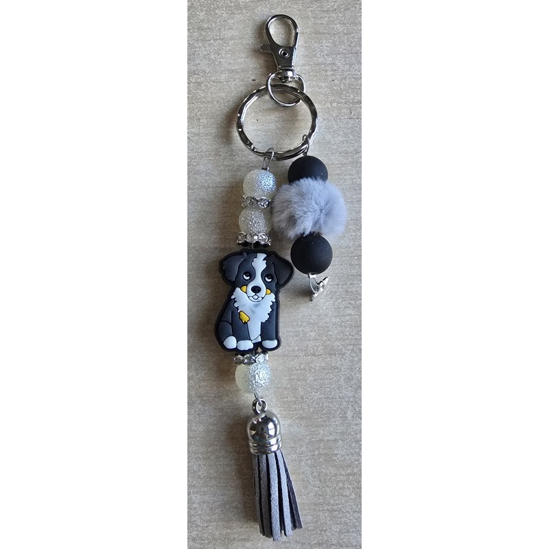 Schlüsselanhänger Hund/grau/schwarz/weiss