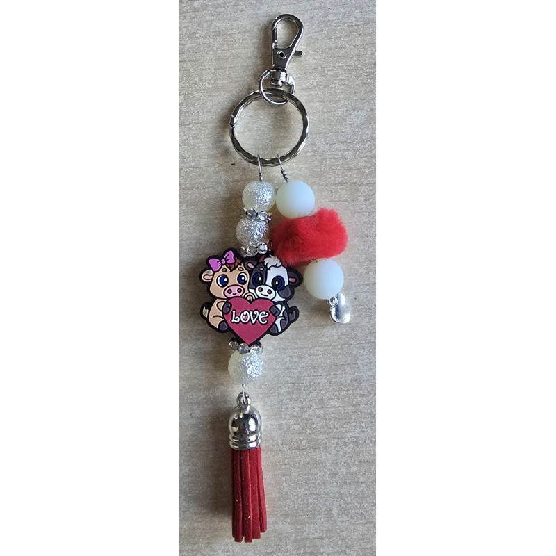 Schlüsselanhänger Zwei Kühe Love/rot/weiss