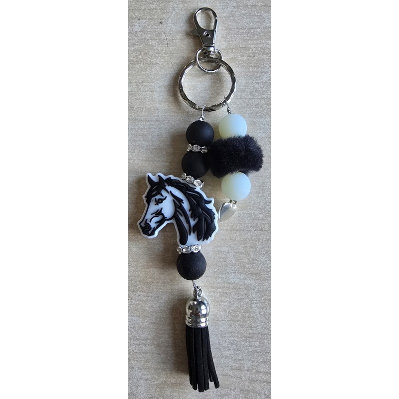 Schlüsselanhänger Pferdekopf/schwarz/weiss