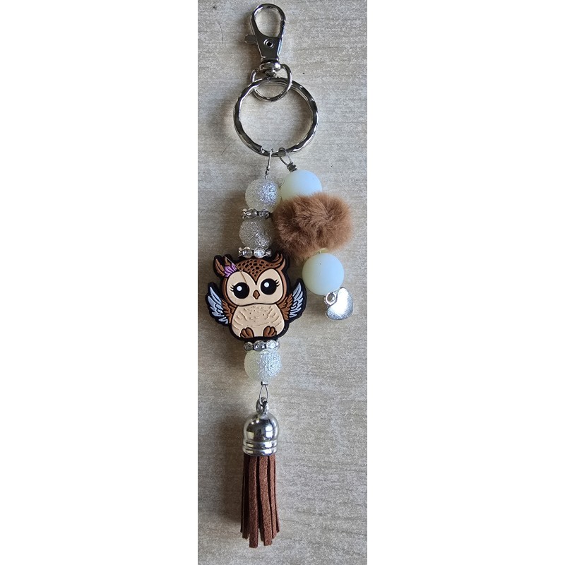 Schlüsselanhänger Eule/braun/weiss