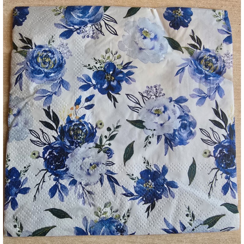Serviette Blumen blau/hellblau