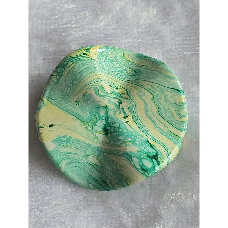 Kunststoff Perle rund-flach-gewellt mint/gelb