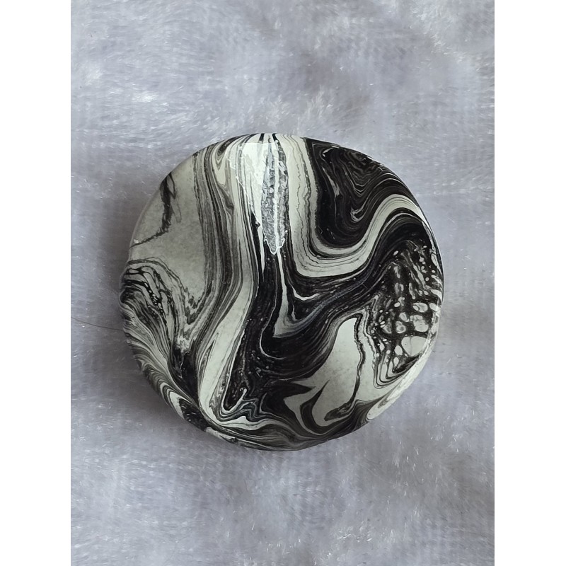 Kunststoff Perle rund-flach-gewellt schwarz/weiss