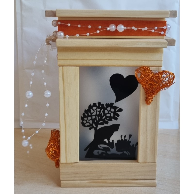 Klötzchen Laterne Herzen/Katze natur-orange