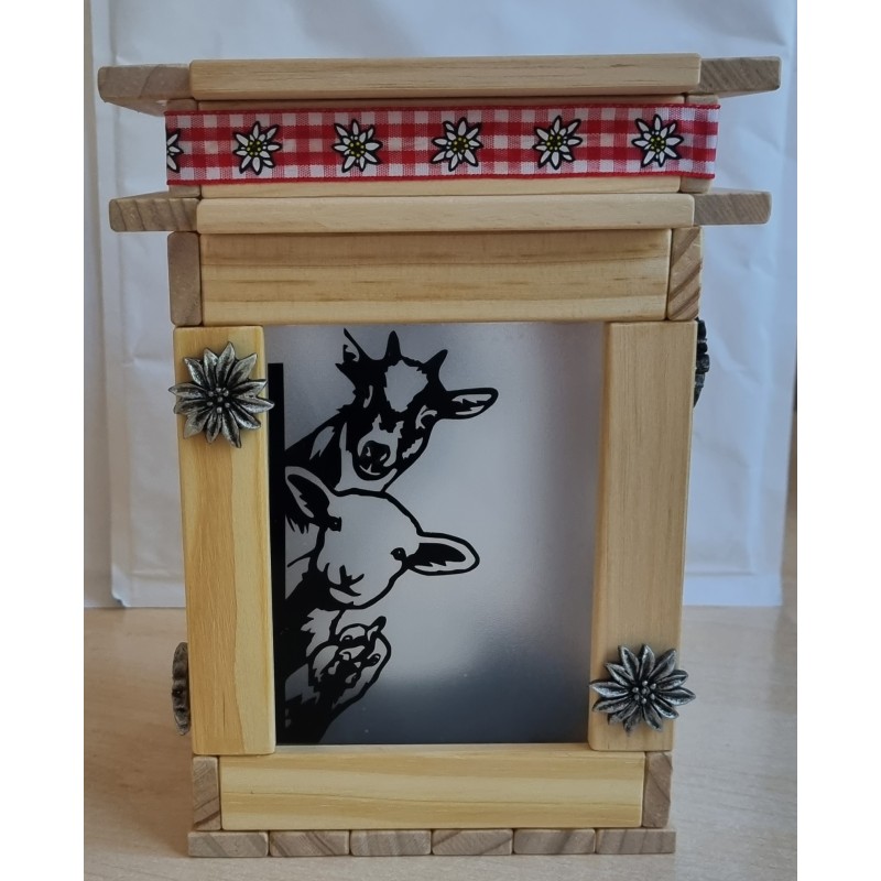 Klötzchen Laterne Bauernhof Tiere natur-rot kariert