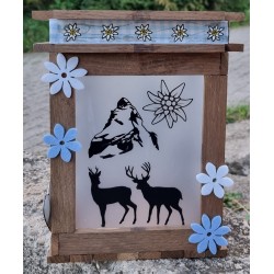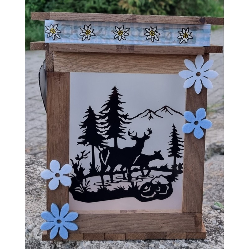 Klötzchen Laterne Hirsch/Glück beginnt geräuchte Eiche-hellblau kariert
