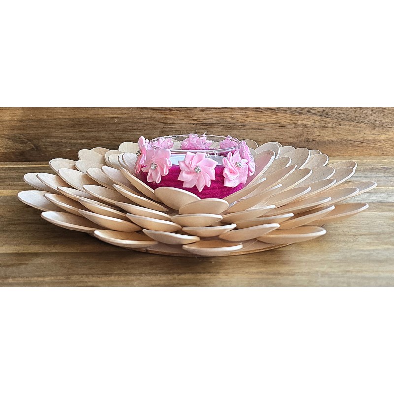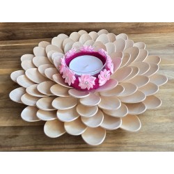 Holzlöffel Teelicht gross Blumen/pink