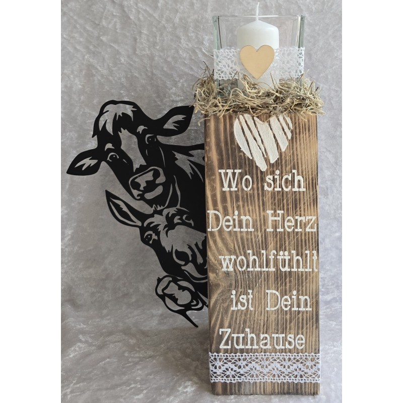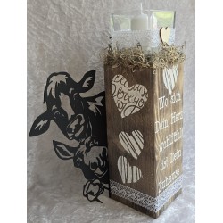 Holzklotz Teelicht Kuh/Esel/Gans