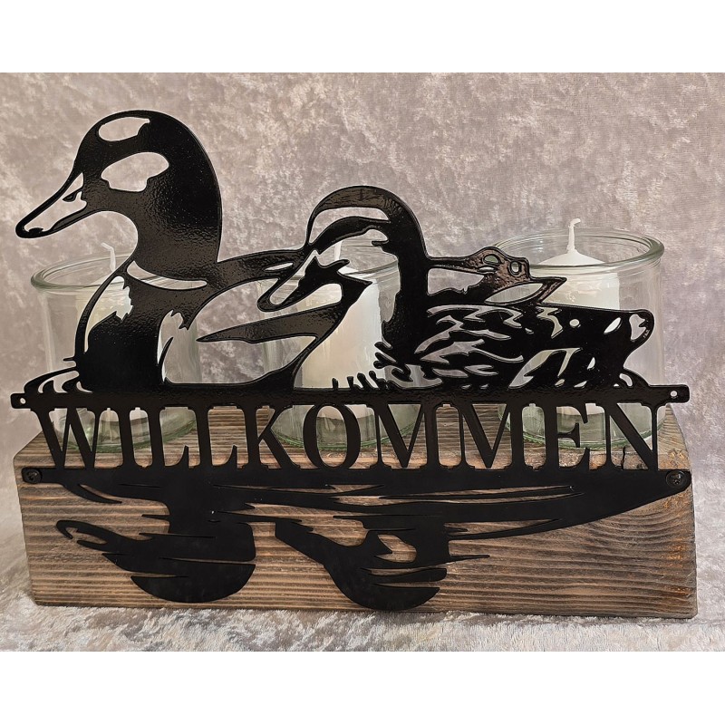 Teelicht Balken Willkommen/Enten
