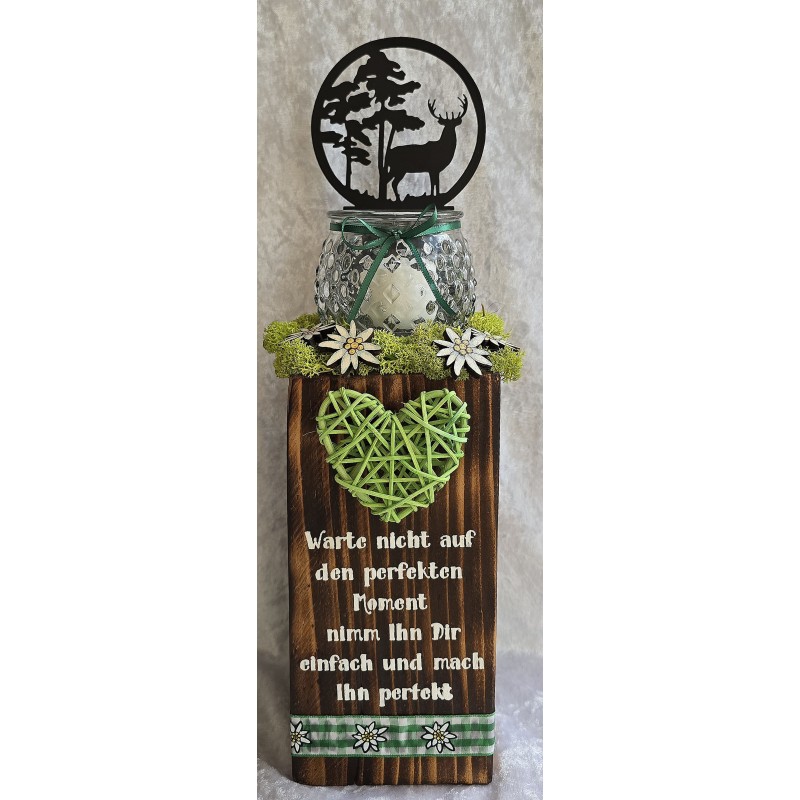 Teelicht Klotz "Warte nicht..."/Hirsch
