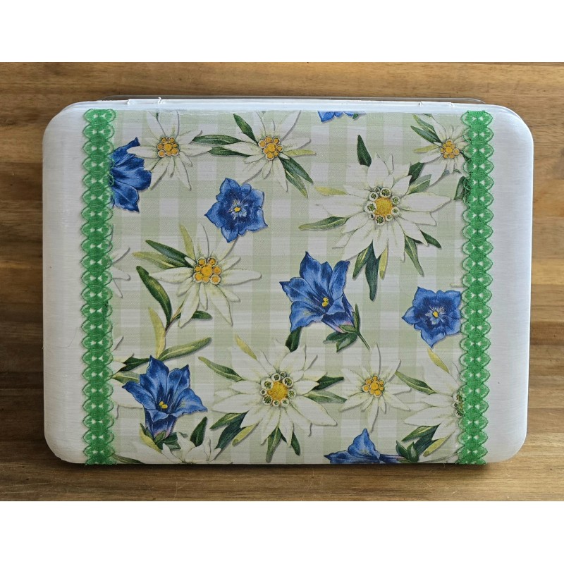 Alu Dose Edelweiss und Enzian/hellgrün kariert