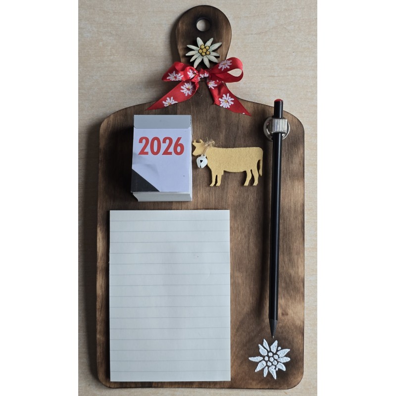Brettchen mit Notizblock/Kalender 2026 und Bleistift rot
