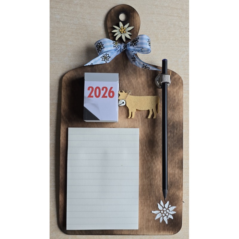 Brettchen mit Notizblock/Kalender 2026 und Bleistift hellblau 2