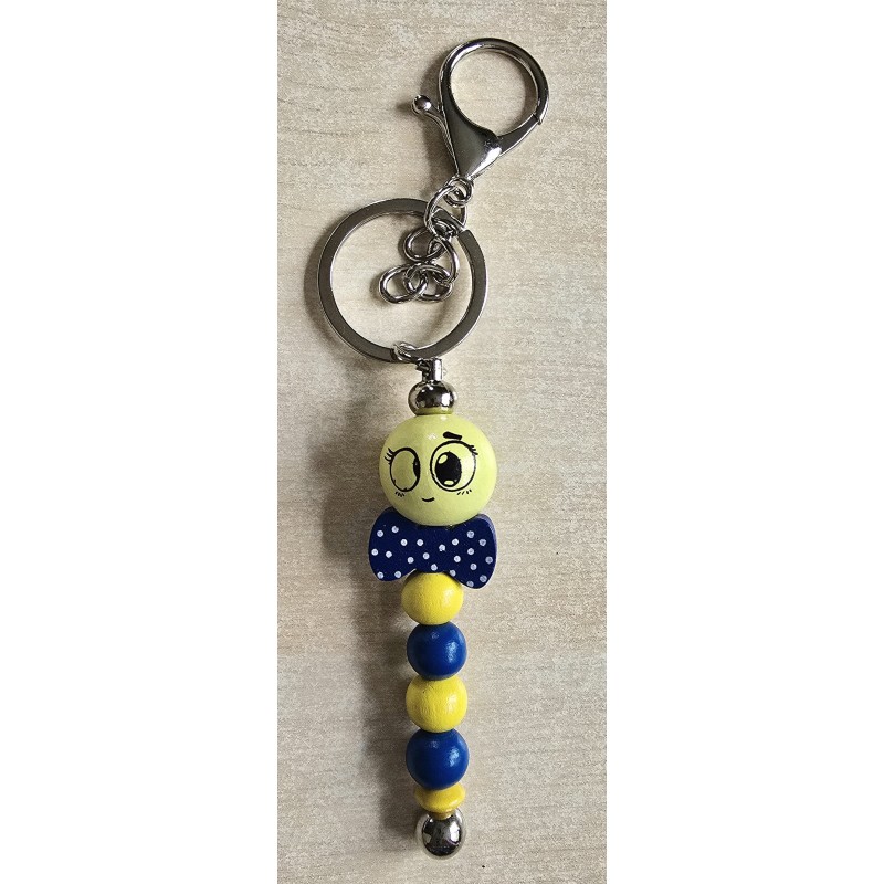 Holz Würmchen Schlüsselanhänger gelb/blau