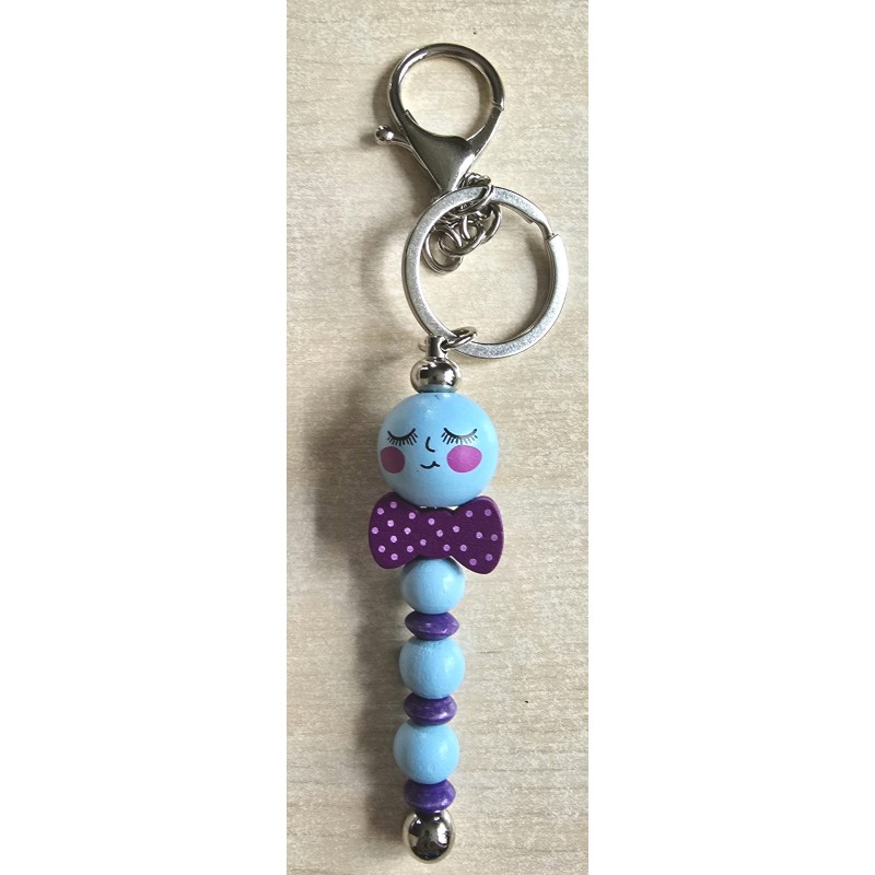 Holz Würmchen Schlüsselanhänger hellblau/violett