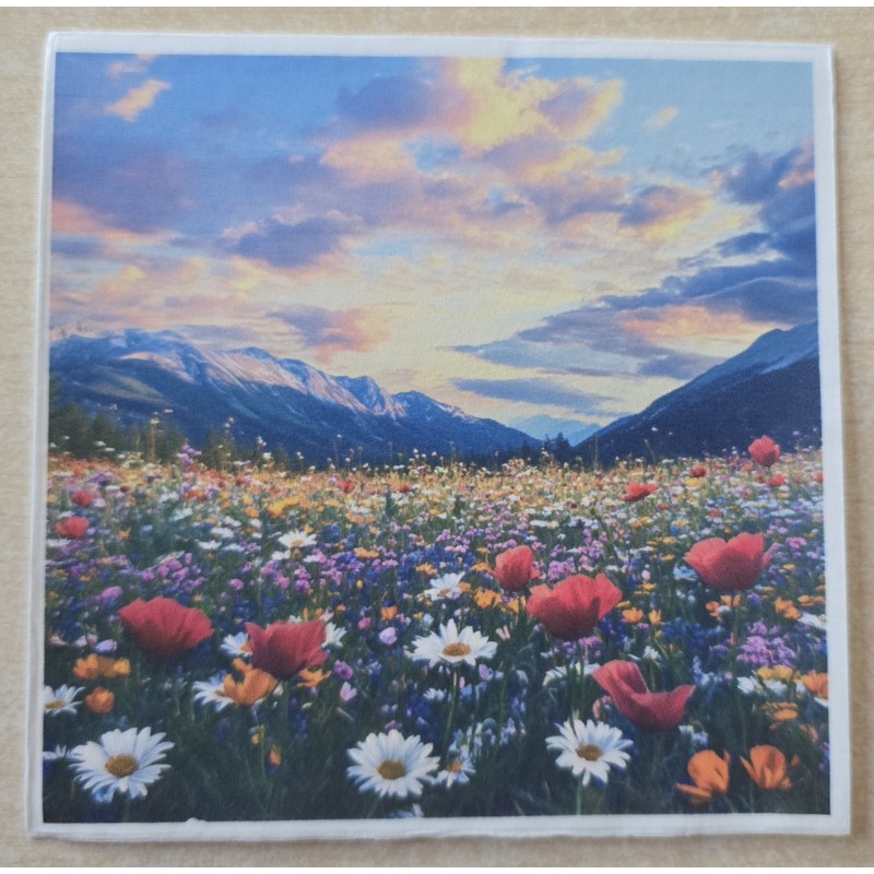 Serviette Blumenwiese/Berge/Wolkenhimmel