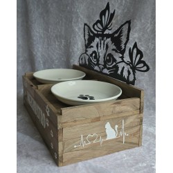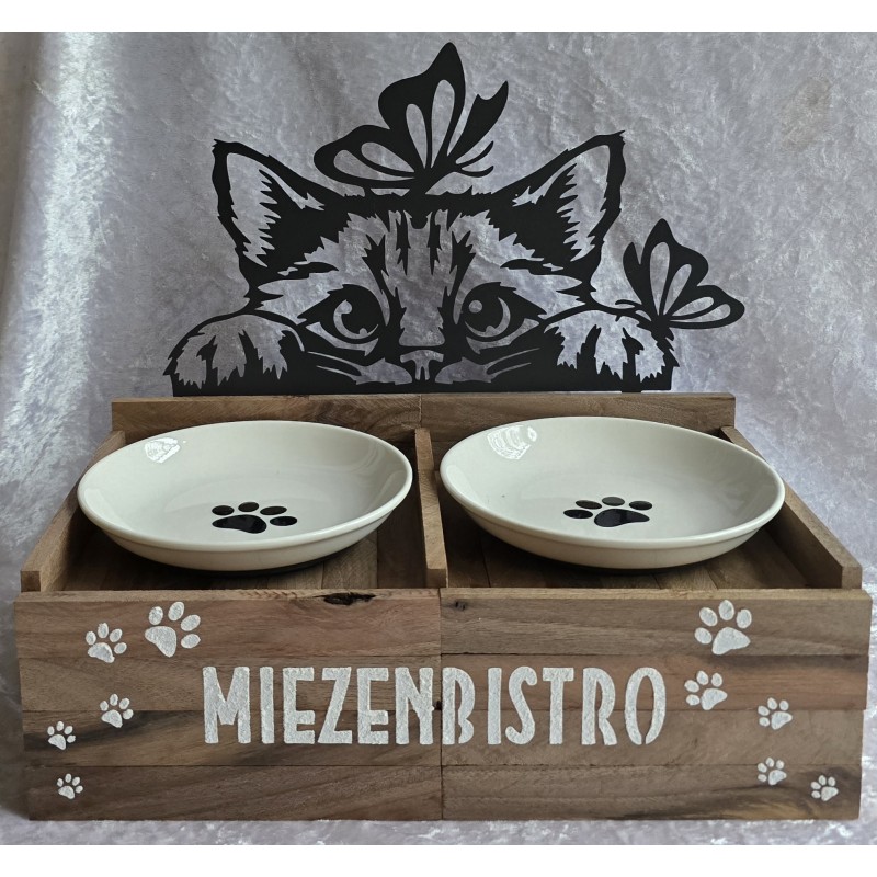 Katzen Futternapf Katzenkopf mit Schmetterlingen/Schoko Eiche