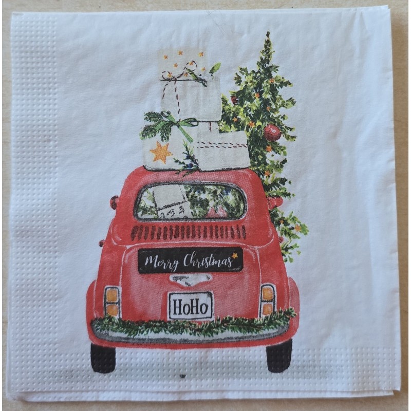 Serviette Auto mit Weihnachtsbaum und Geschenken