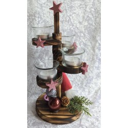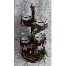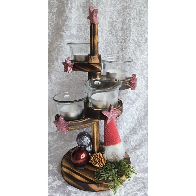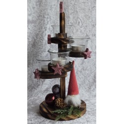Adventsgesteck rund gestuft Wichtel/coralle-rosa