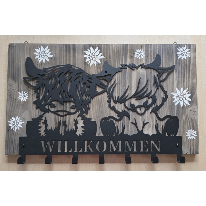 Garderobe Zwei Hochlandrinder " Willkommen "