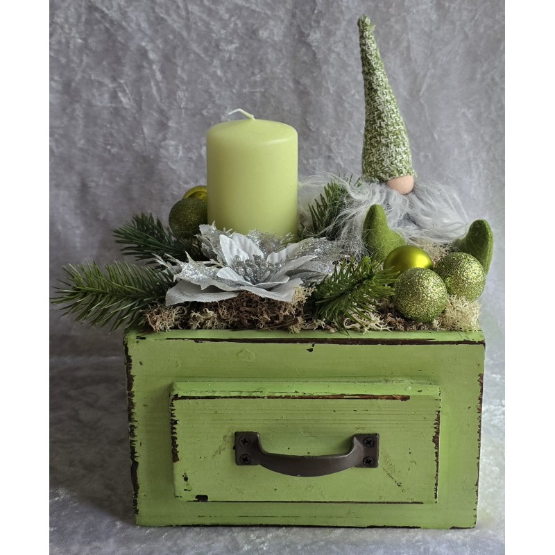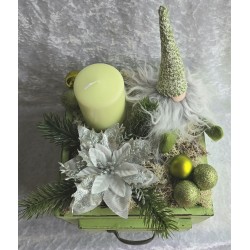 Weihnachts Kiste mit Kerze/Wichtel/hellgrün