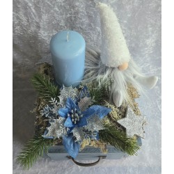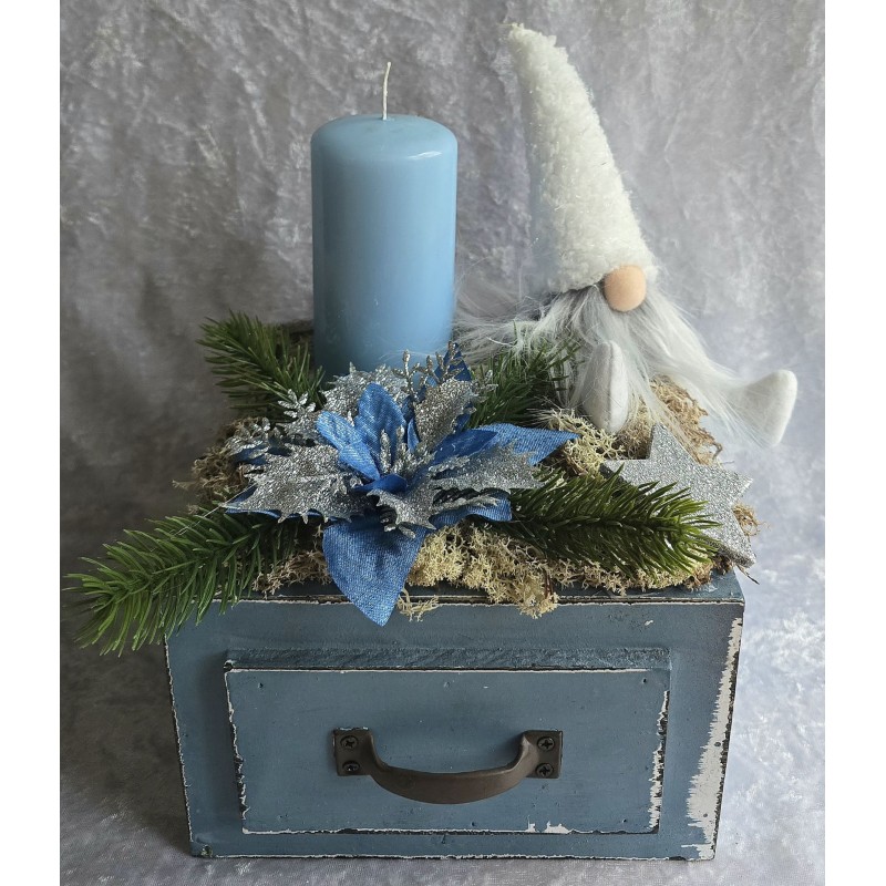 Weihnachts Kiste mit Kerze/Wichtel/blau-weiss