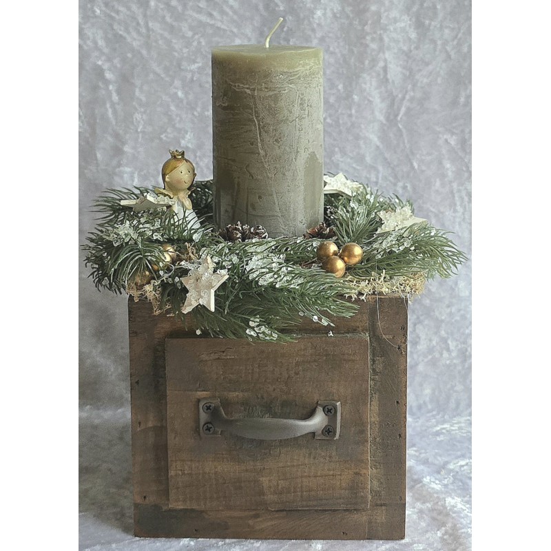 Weihnachts Kiste mit Kerze/Engel/braun/olive