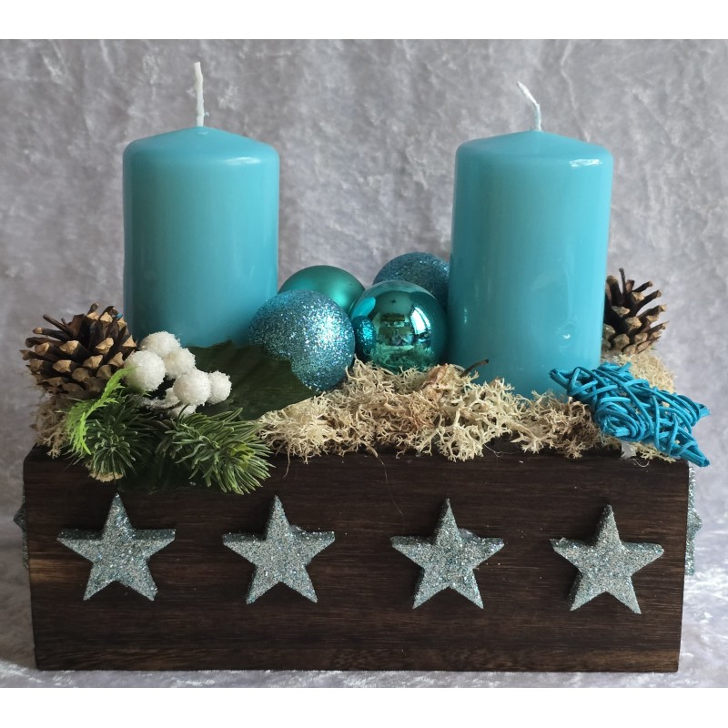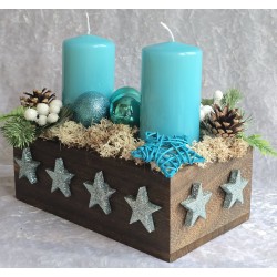 Weihnachts Kiste mit Kerzen/Sterne/türkis