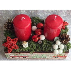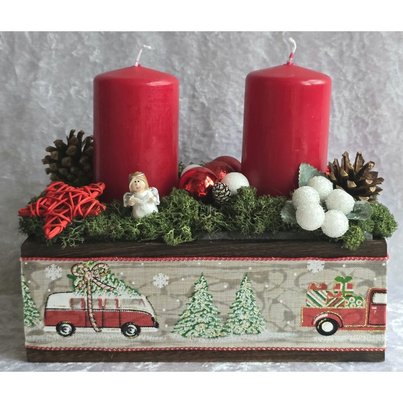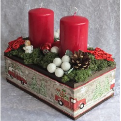 Weihnachts Kiste mit Kerzen/Autos/rot