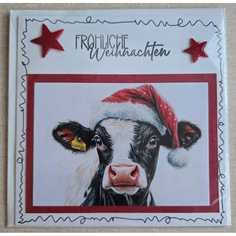Karte Kuh mit Weihnachtsmütze rot-creme 1