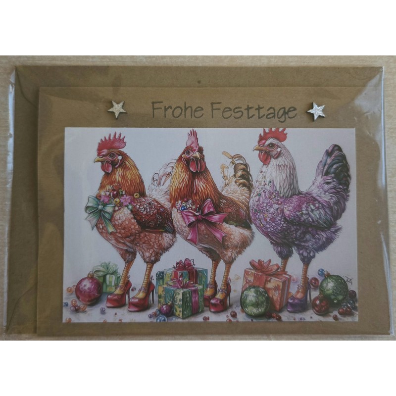 Karte Bunte Weihnachts Hühner und Hähne 1