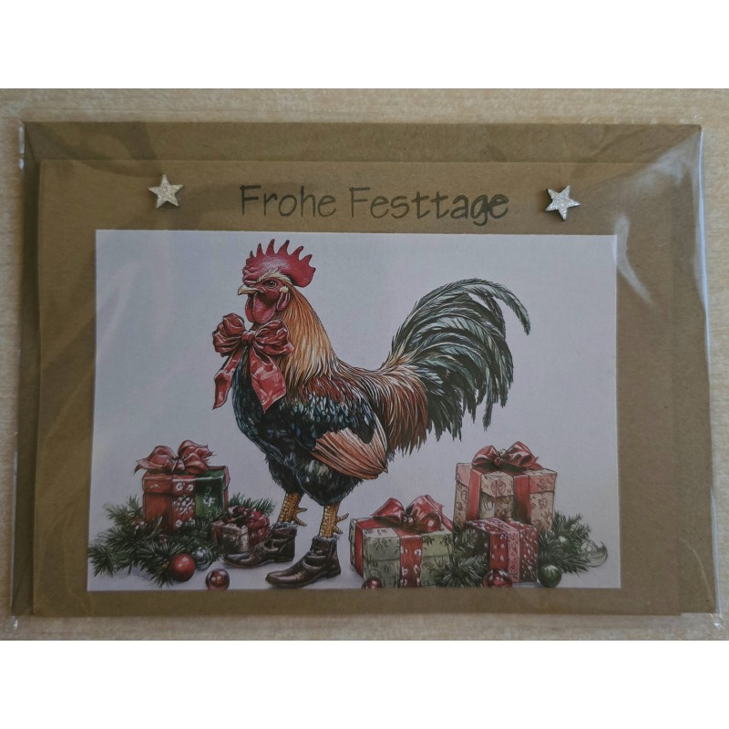 Karte Bunte Weihnachts Hühner und Hähne 2