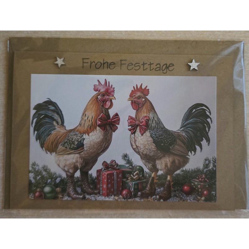 Karte Bunte Weihnachts Hühner und Hähne 4