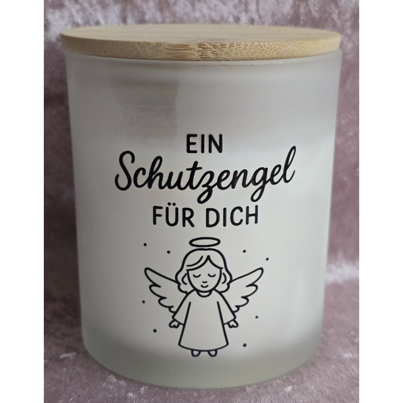 Kerze im Glas mit Deckel " Ein Schutzengel für Dich" weiss