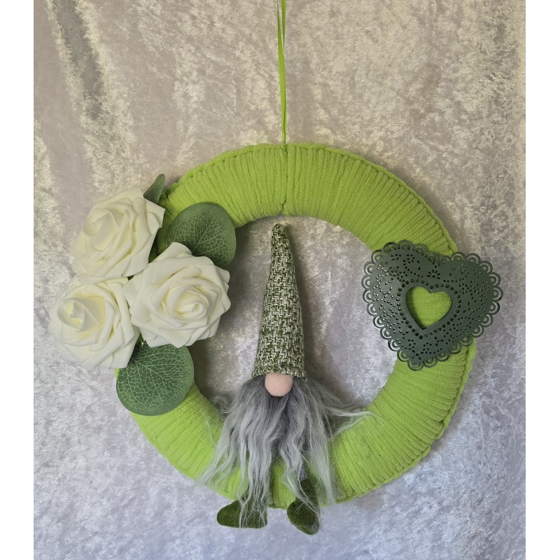 Tür/Wanddeko Ring Wichtel/Rosen hellgrün