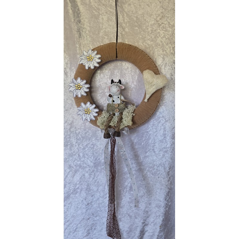 Tür/Wanddeko Ring Kuh/Edelweiss braun
