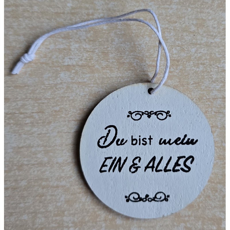 Holz Aufhänger rund " Du bist mein Ein & Alles " weiss