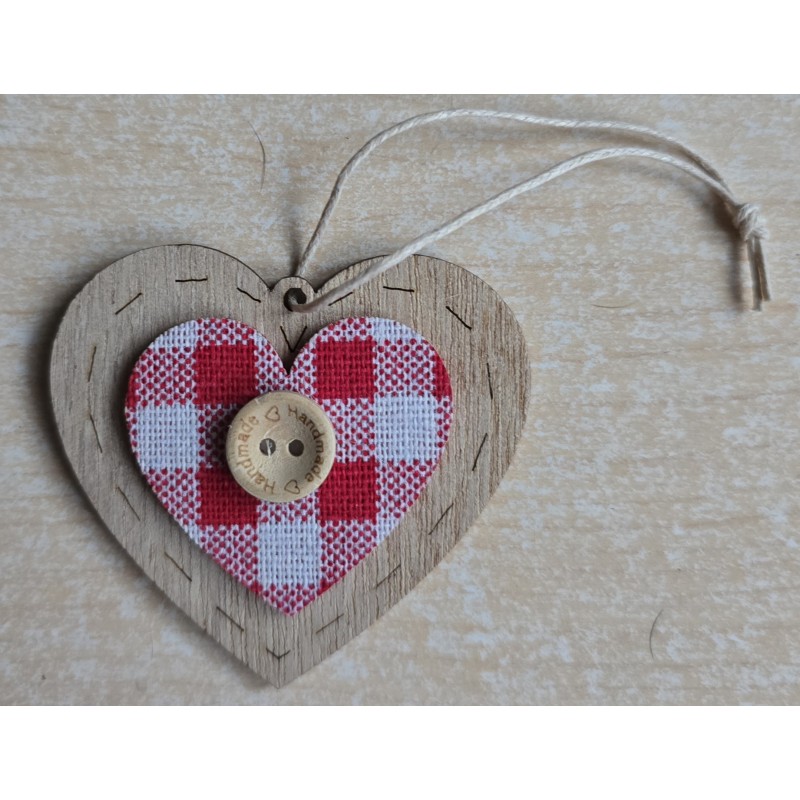 Holz Aufhänger Herz mit Karo rot