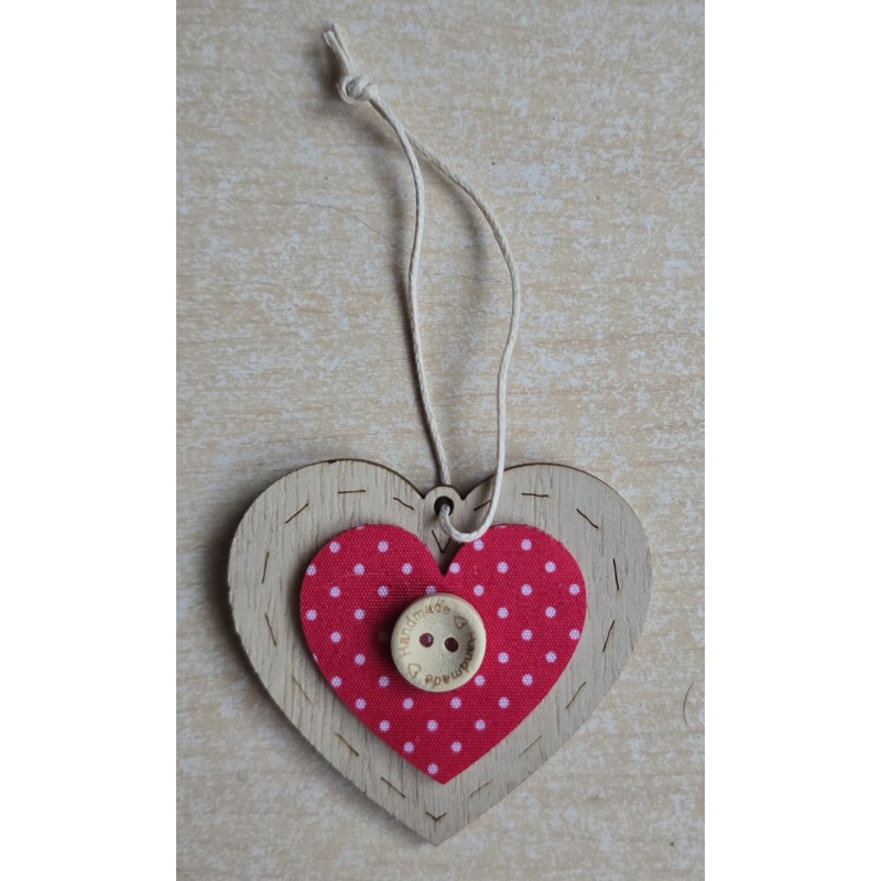 Holz Aufhänger Herz mit Punkten rot