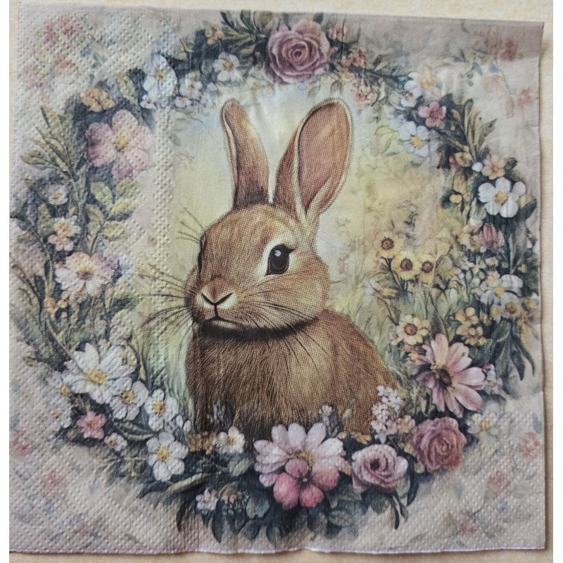Serviette Kaninchen im Blumenkranz beige-rosa