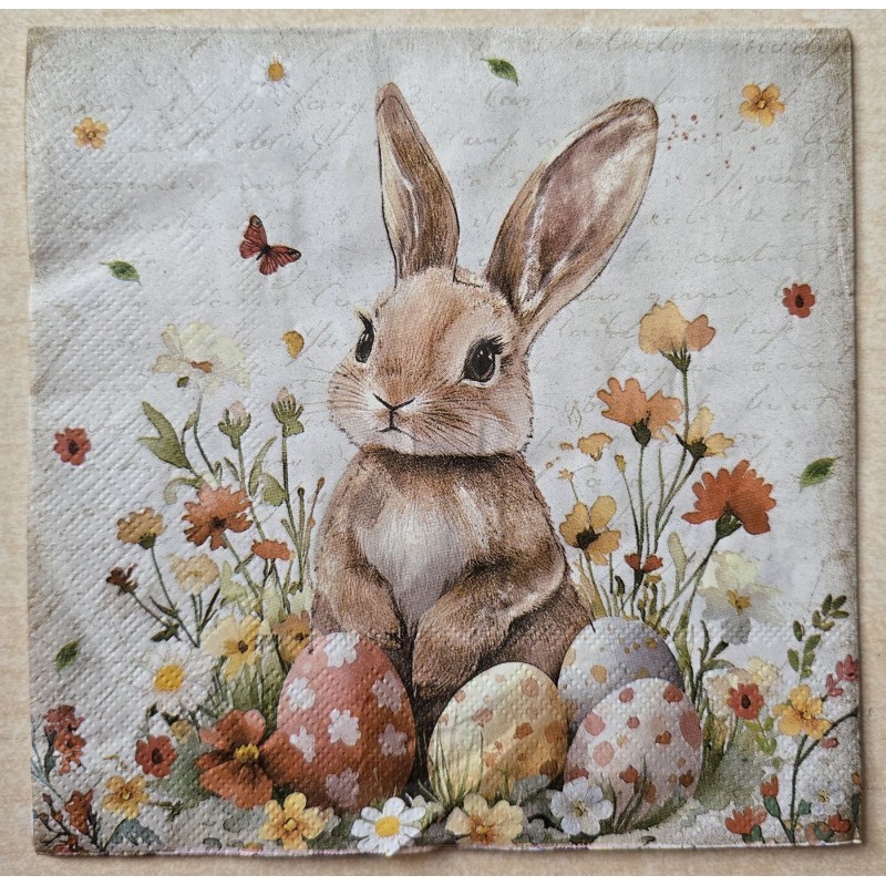 Serviette Kaninchen mit Ostereiern beige-orange