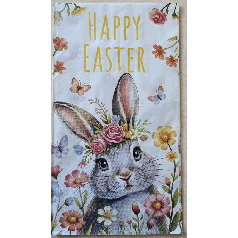 Serviette Osterhase/Blumen/Happy Easter