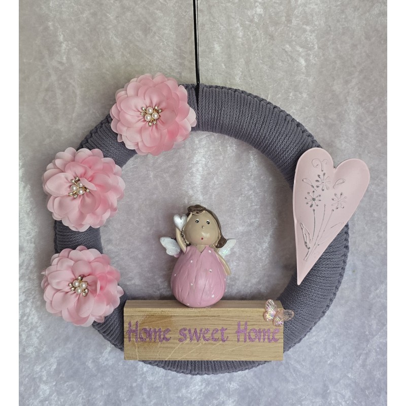 Tür/Wanddeko Ring Engel/Home sweet Home grau-rosa