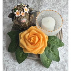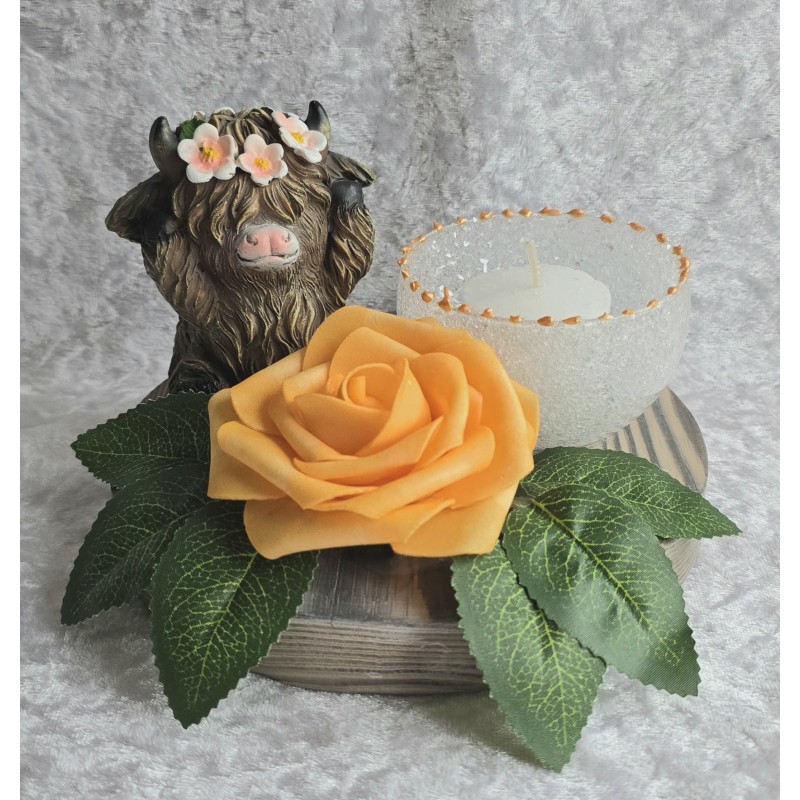 Teelicht Scheibe Hochlandrind/Rose orange