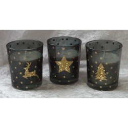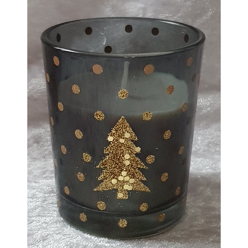 Glas mit Kerze Tanne gold