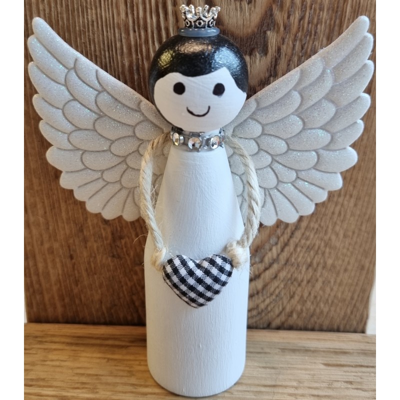 Holz Engel mit Gesicht weiss/schwarz Herz
