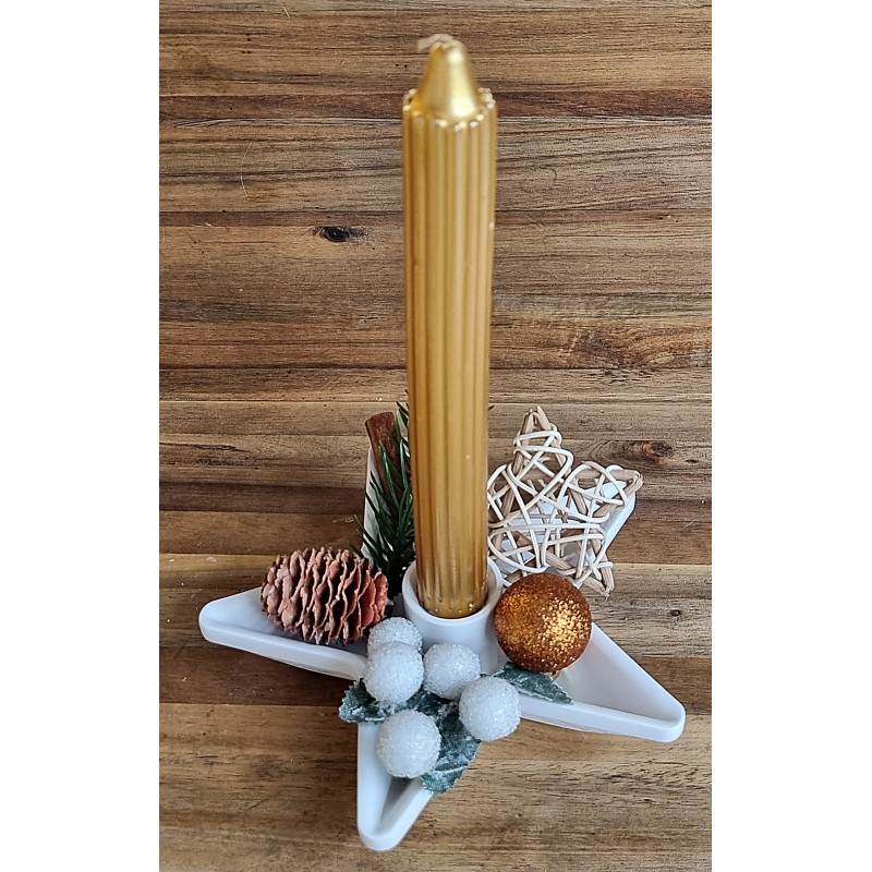 Kerzen-Gesteck gold/weiss