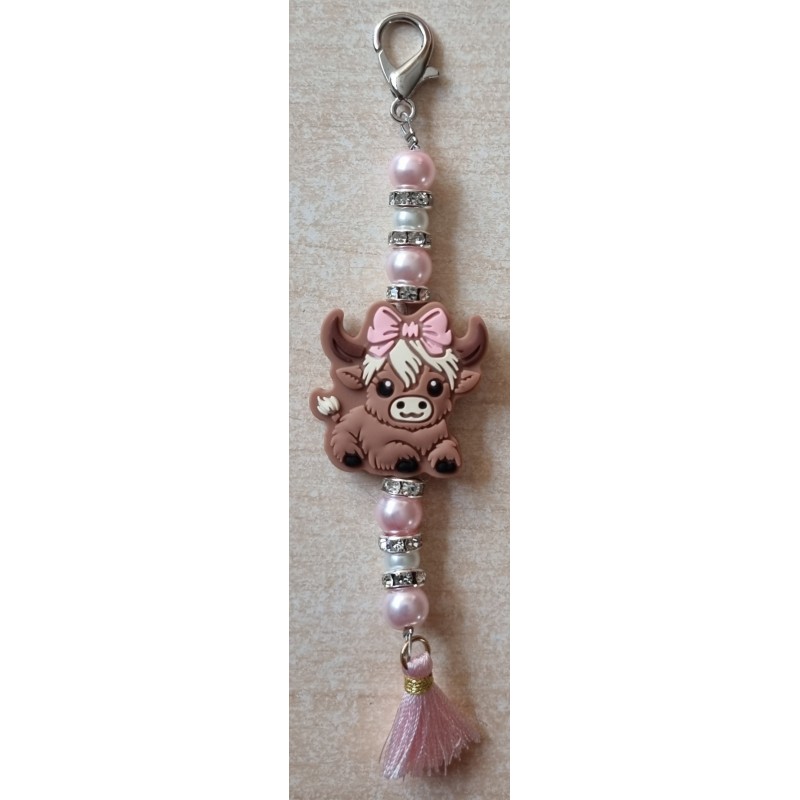 Schlüsselanhänger Hochlandrind Mädchen rosa