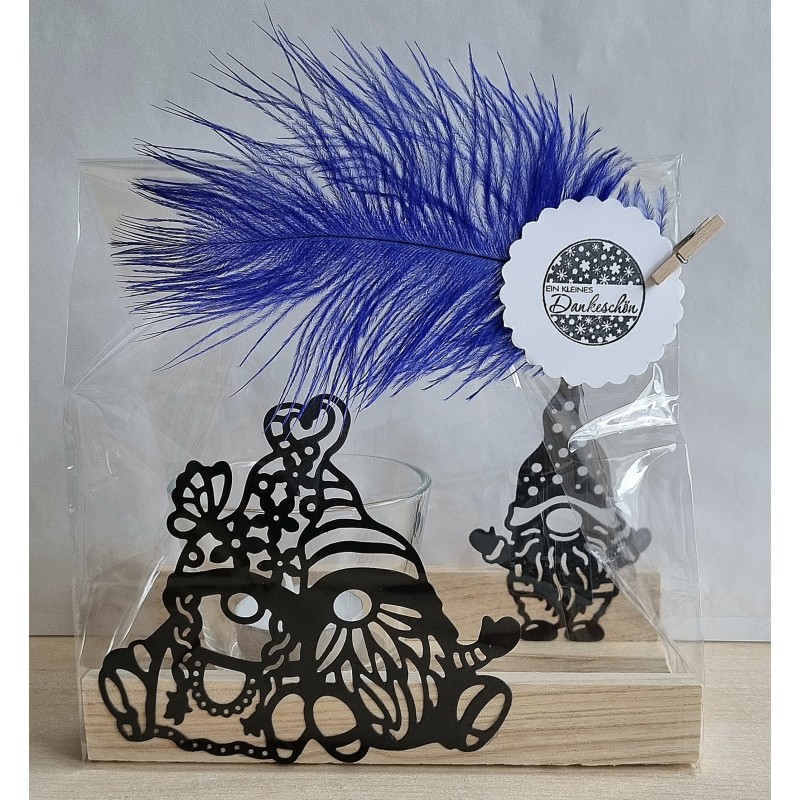 Teelicht Holz/Glas Wichtel
