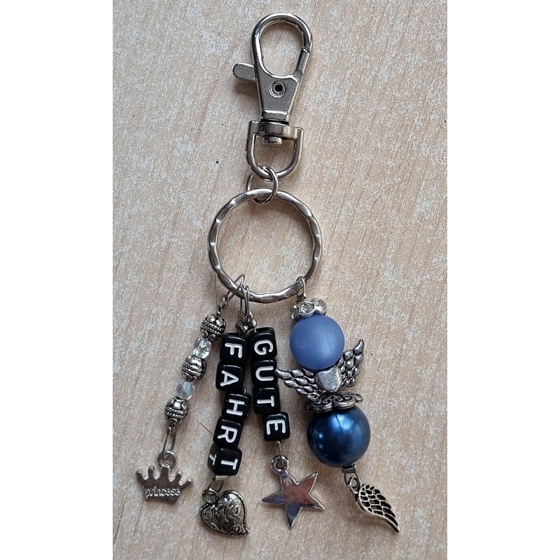 Schlüsselanhänger "Gute Fahrt" blau/schwarz